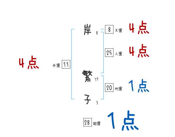 岸繁子さんの画数の鑑定結果