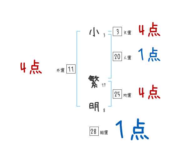 小繁明さんの画数の鑑定結果