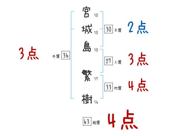 宮城島繁樹さんの画数の鑑定結果