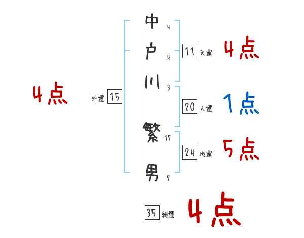 中戸川繁男さんの画数の鑑定結果