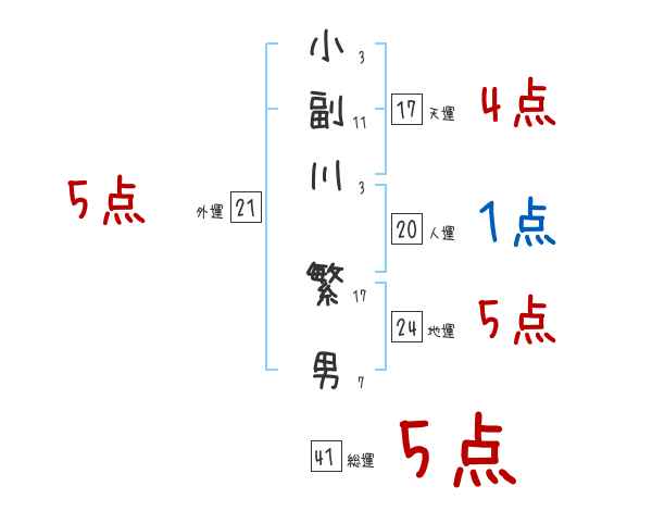 小副川繁男さんの画数の鑑定結果