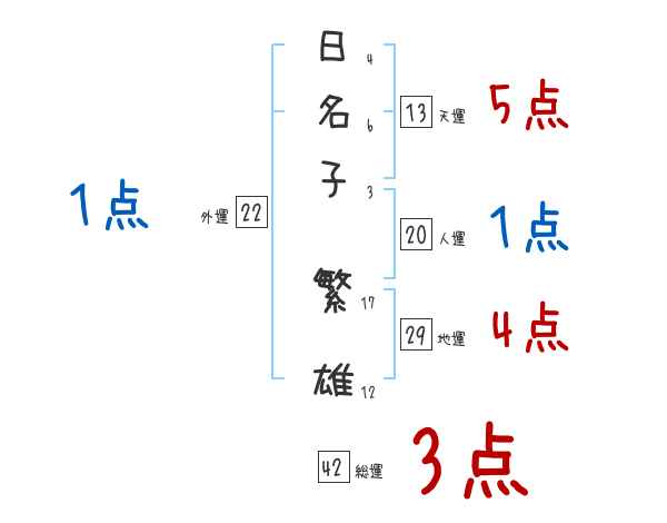 総運![]() | 日名子繁雄さんの総運は42画の3つ星!病気に注意。多芸であるが消極的でおとなしい。 あなたの人生を表す1番重要な運勢です。生涯を通じて影響する総合運となり、主に50歳以降の晩年期に影響を及ぼします。 |
