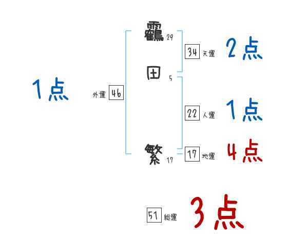 靏田繁さんの画数の鑑定結果