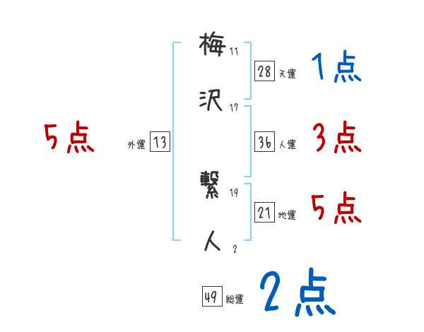 梅沢繋人さんの画数の鑑定結果