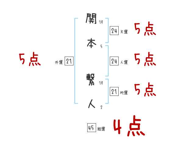 関本繋人さんの画数の鑑定結果
