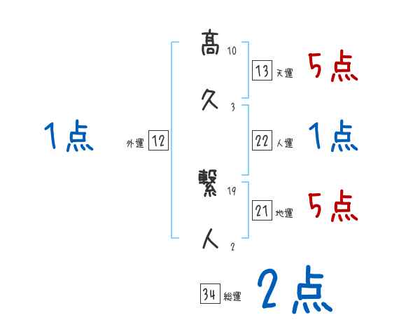 髙久繋人さんの画数の鑑定結果