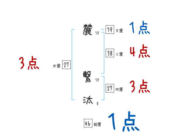 外運![]() | 麓繋汰さんの外運は27画の3つ星!頭脳明晰だが強情で摩擦が多い傾向。孤立に注意。 生活面を象徴する運勢です。外部から受ける影響力を表し、結婚運、家庭運や職場、環境への順応性を表します。 |