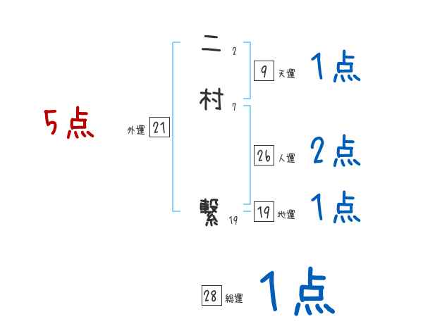 二村繋さんの画数の鑑定結果