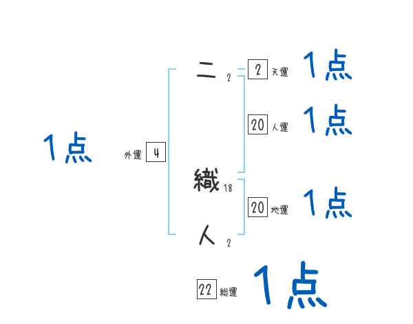 地運![]() | 二織人さんの地運は20画の1つ星!社交が苦手。人とは違った才能があり波乱万丈な人生かも。 個性を表す基礎的な運勢です。性格形成や対人関係、行動力など家庭環境に影響されます。主に誕生してから20歳くらいまでの若年期の運勢を表します。 |