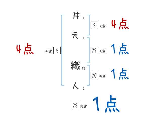 総運![]() | 井元織人さんの総運は28画の1つ星!家庭環境に注意。スポーツで活躍できる能力があるかも。 あなたの人生を表す1番重要な運勢です。生涯を通じて影響する総合運となり、主に50歳以降の晩年期に影響を及ぼします。 |