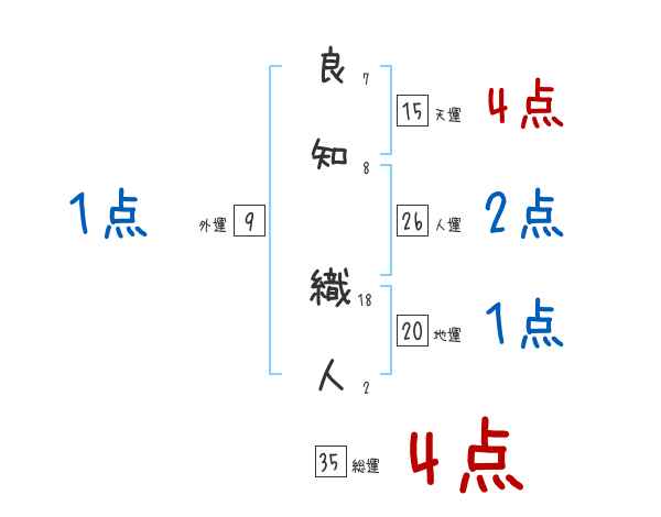 良知織人さんの画数の鑑定結果