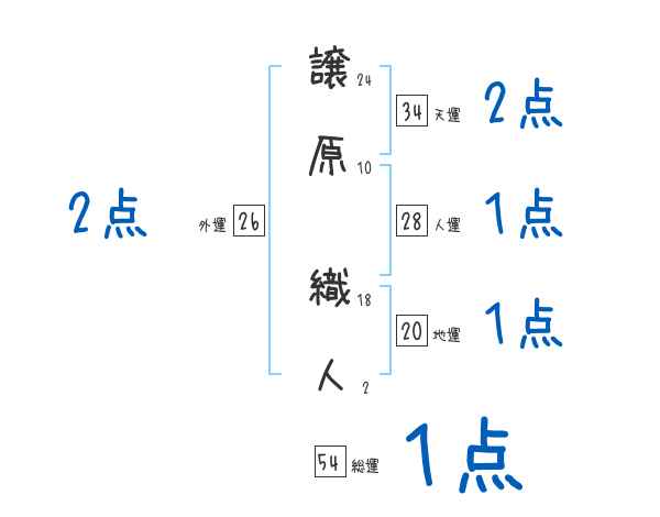 譲原織人さんの画数の鑑定結果