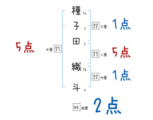種子田織斗さんの画数の鑑定結果