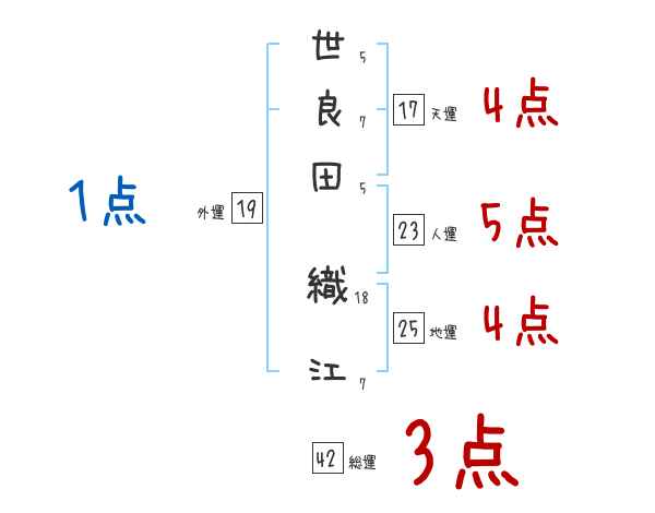 総運![]() | 世良田織江さんの総運は42画の3つ星!病気に注意。多芸であるが消極的でおとなしい。 あなたの人生を表す1番重要な運勢です。生涯を通じて影響する総合運となり、主に50歳以降の晩年期に影響を及ぼします。 |