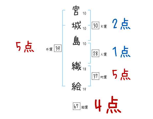 宮城島織絵さんの画数の鑑定結果