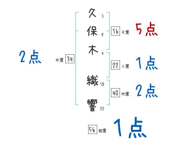 外運![]() | 久保木織響さんの外運は34画の2つ星!独創性に優れるが、自尊心が強く災難に注意しましょう。 生活面を象徴する運勢です。外部から受ける影響力を表し、結婚運、家庭運や職場、環境への順応性を表します。 |