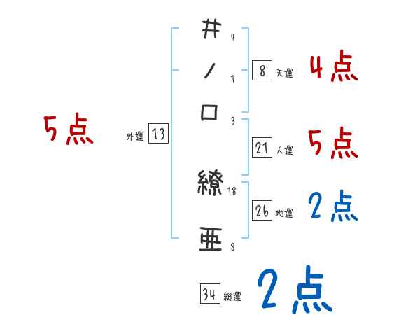井ノ口繚亜さんの画数の鑑定結果