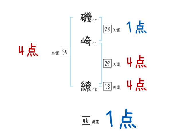 外運![]() | 磯崎繚さんの外運は35画の4つ星!温厚な性格で感受性が高い。穏和な性格で人望が厚い。 生活面を象徴する運勢です。外部から受ける影響力を表し、結婚運、家庭運や職場、環境への順応性を表します。 |