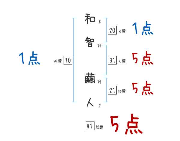 和智繭人さんの画数の鑑定結果