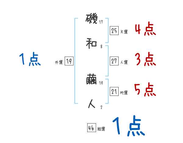磯和繭人さんの画数の鑑定結果