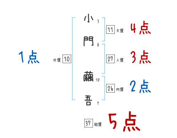 小門繭吾さんの画数の鑑定結果