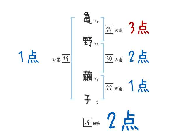 亀野繭子さんの画数の鑑定結果