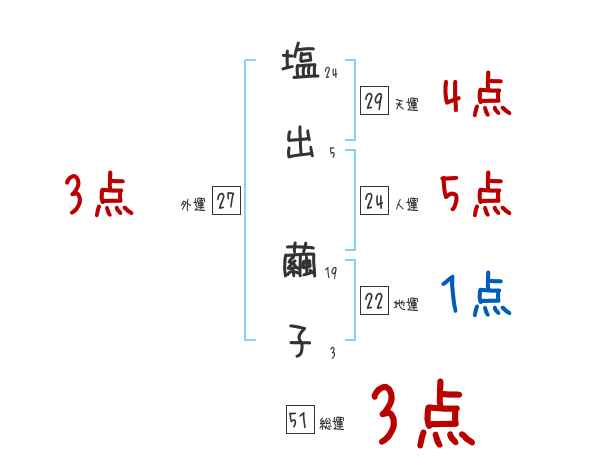 塩出繭子さんの画数の鑑定結果