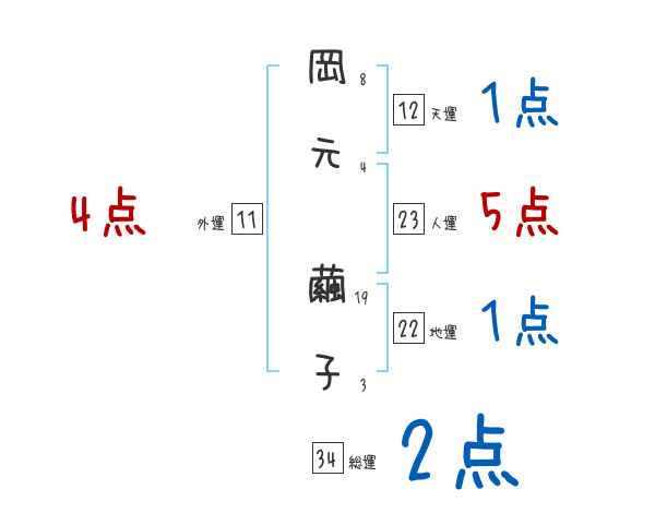 岡元繭子さんの画数の鑑定結果