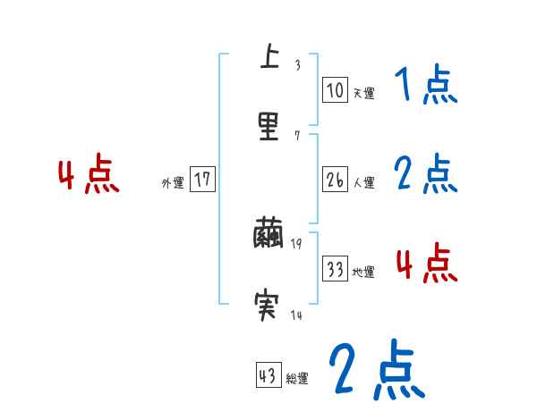 上里繭実さんの画数の鑑定結果