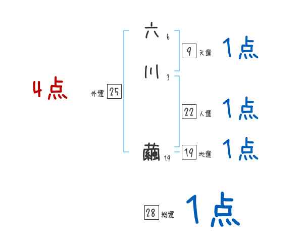 総運![]() | 六川繭さんの総運は28画の1つ星!家庭環境に注意。スポーツで活躍できる能力があるかも。 あなたの人生を表す1番重要な運勢です。生涯を通じて影響する総合運となり、主に50歳以降の晩年期に影響を及ぼします。 |