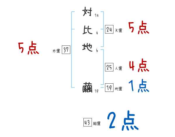 対比地繭さんの画数の鑑定結果