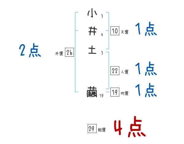 外運![]() | 小井土繭さんの外運は26画の2つ星!波瀾万丈かも。信頼できる人を大事にしましょう。 生活面を象徴する運勢です。外部から受ける影響力を表し、結婚運、家庭運や職場、環境への順応性を表します。 |