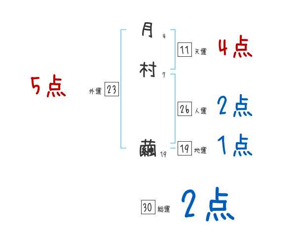 外運![]() | 月村繭さんの外運は23画の5つ星!想像力に優れ活力がある。一代で成功し名誉を手に入れる。 生活面を象徴する運勢です。外部から受ける影響力を表し、結婚運、家庭運や職場、環境への順応性を表します。 |