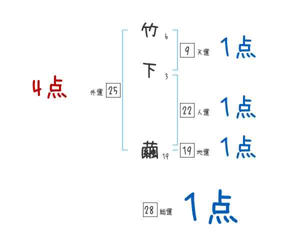 竹下繭さんの画数の鑑定結果