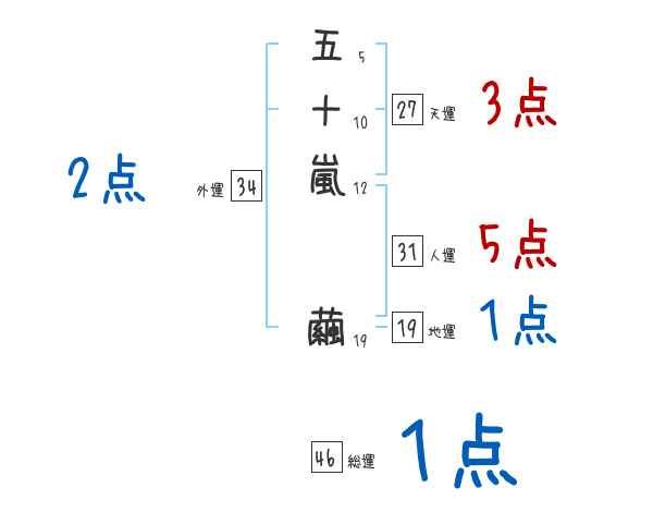 総運![]() | 五十嵐繭さんの総運は46画の1つ星!迷走することが多く苦労するかも。目先のことにとらわれないように。 あなたの人生を表す1番重要な運勢です。生涯を通じて影響する総合運となり、主に50歳以降の晩年期に影響を及ぼします。 |