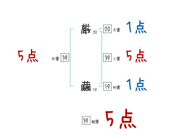 総運![]() | 厳繭さんの総運は39画の5つ星!社交性に優れ人望が厚い。人の上に立ち成功する。 あなたの人生を表す1番重要な運勢です。生涯を通じて影響する総合運となり、主に50歳以降の晩年期に影響を及ぼします。 |