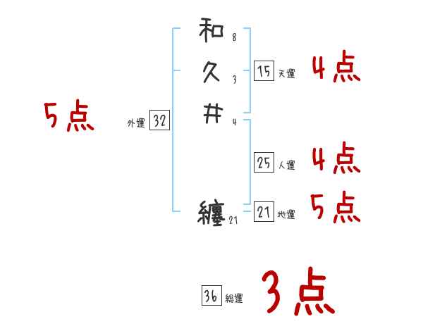 和久井纏さんの画数の鑑定結果