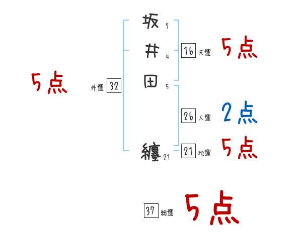坂井田纏さんの画数の鑑定結果