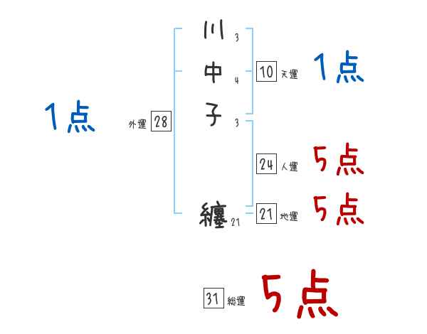 川中子纏さんの画数の鑑定結果