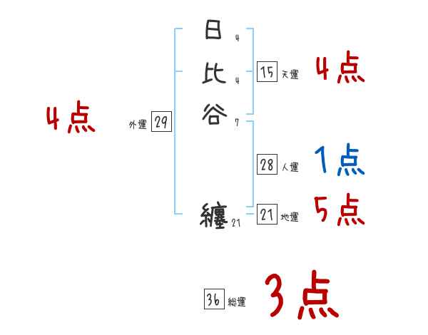 天運![]() | 日比谷纏さんの天運は15画の4つ星!人徳があり出世する。順調に物事を進め円満な人生。 家系が持つ宿命的な運勢を表します。祖先から受け継いだ苗字ですので自分の力が及びません。家柄を象徴します。 |