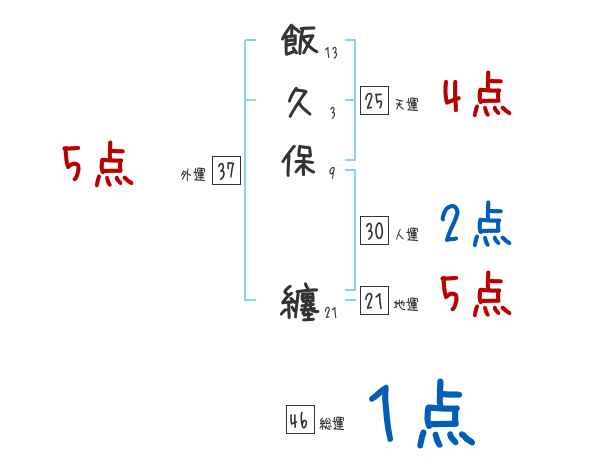 飯久保纏さんの画数の鑑定結果