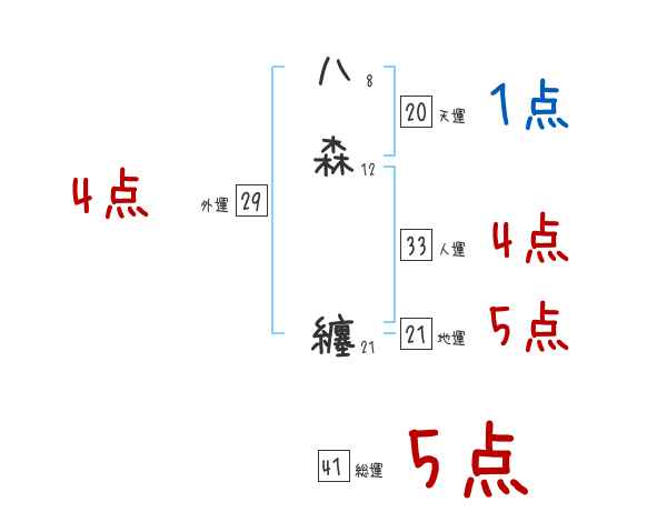 八森纏さんの画数の鑑定結果