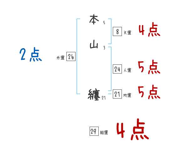 本山纏さんの画数の鑑定結果