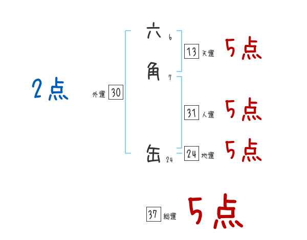 天運![]() | 六角缶さんの天運は13画の5つ星!才能に恵まれ人気がある。名声を手に入れる。円満な人生。 家系が持つ宿命的な運勢を表します。祖先から受け継いだ苗字ですので自分の力が及びません。家柄を象徴します。 |