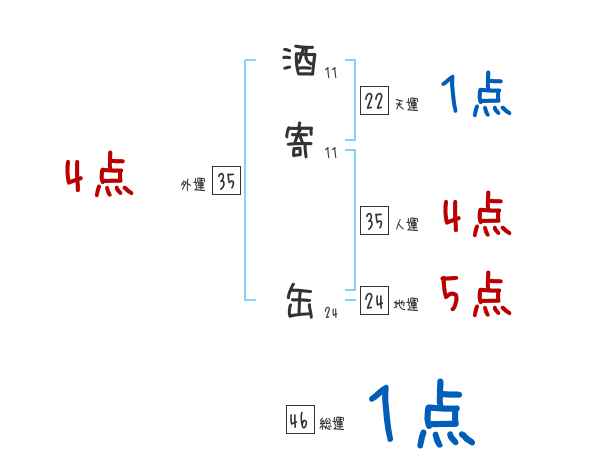 酒寄缶さんの画数の鑑定結果