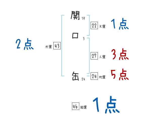 天運![]() | 関口缶さんの天運は22画の1つ星!努力することが苦手ないっぽう手先が器用。芸術性にも優れる。 家系が持つ宿命的な運勢を表します。祖先から受け継いだ苗字ですので自分の力が及びません。家柄を象徴します。 |