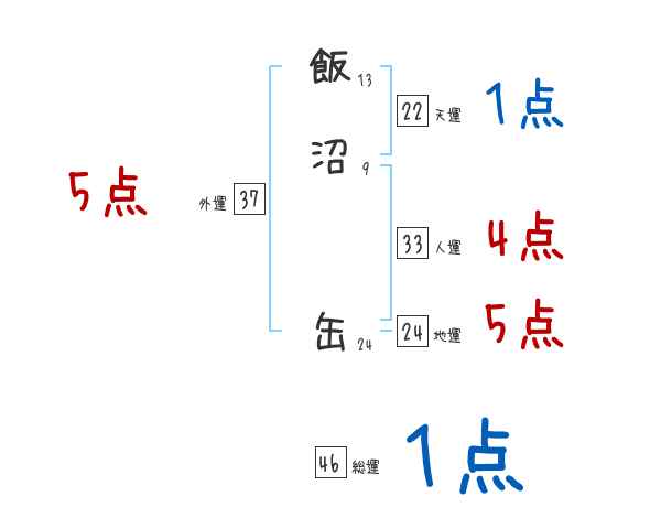 天運![]() | 飯沼缶さんの天運は22画の1つ星!努力することが苦手ないっぽう手先が器用。芸術性にも優れる。 家系が持つ宿命的な運勢を表します。祖先から受け継いだ苗字ですので自分の力が及びません。家柄を象徴します。 |