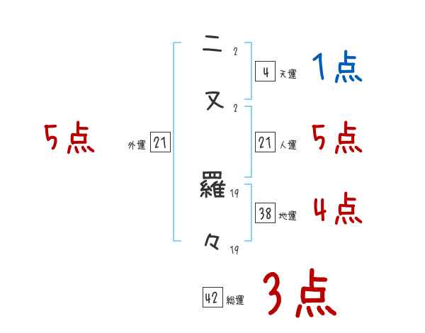 二又羅々さんの画数の鑑定結果