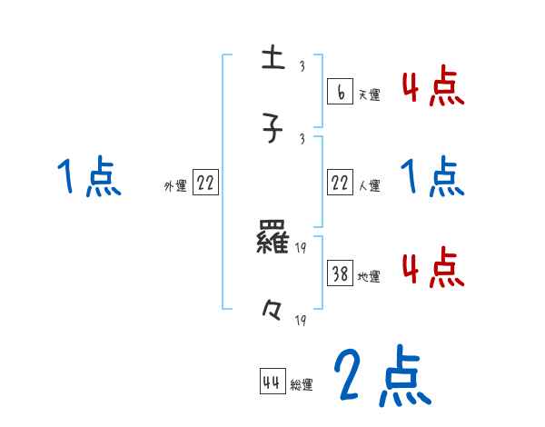 土子羅々さんの画数の鑑定結果