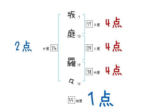 坂庭羅々さんの画数の鑑定結果